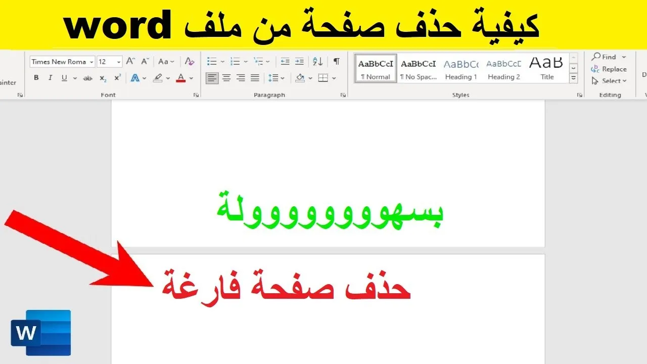 أحيانًا تظهر صفحة فارغة في نهاية المستند أو وسطه، وغالبًا يكون السبب وجود فاصل صفحات أو فقرات مخفية، ولحل المشكلة: