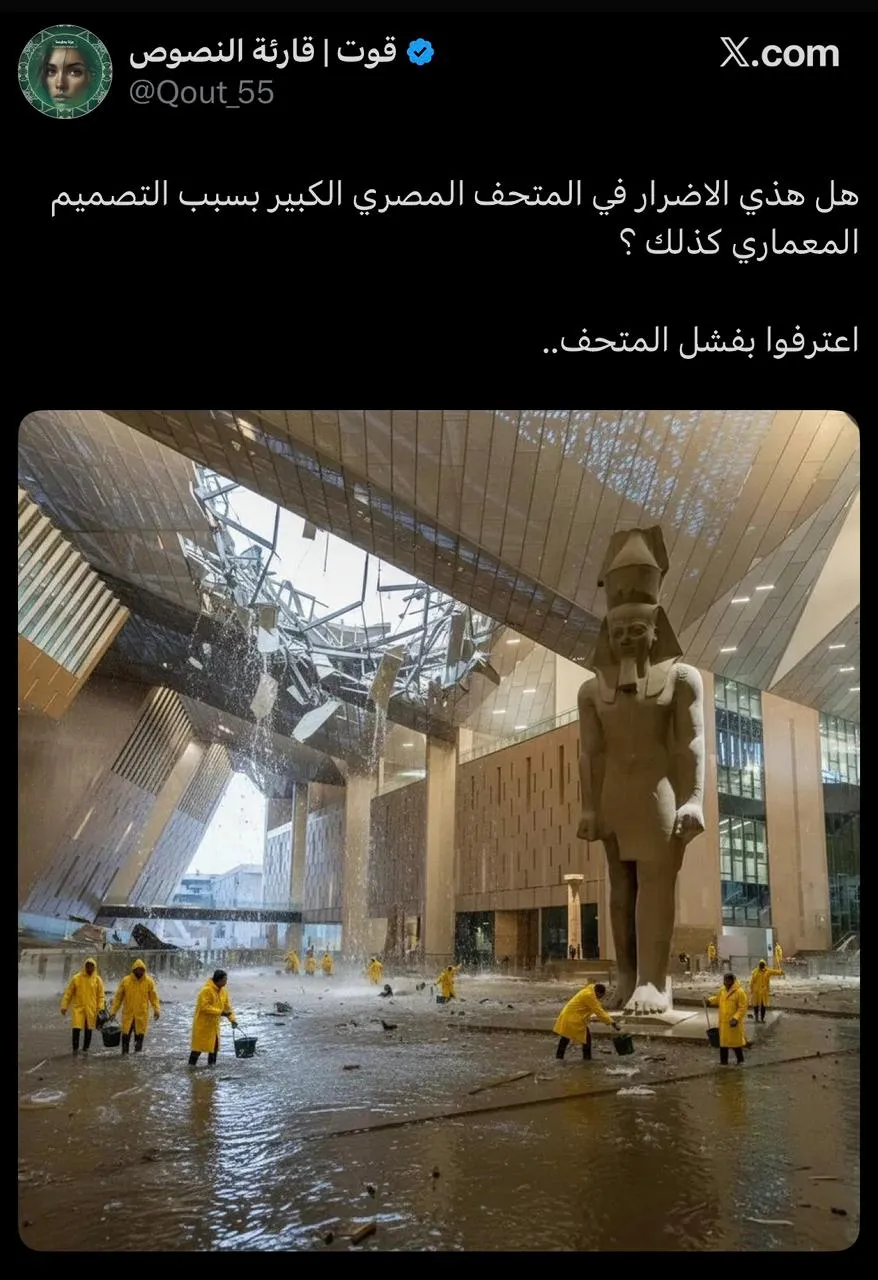 ما هي حقيقة غرق المتحف المصري الكبير؟ بعد انتشار صور غرقه على منصات التواصل الاجتماعي