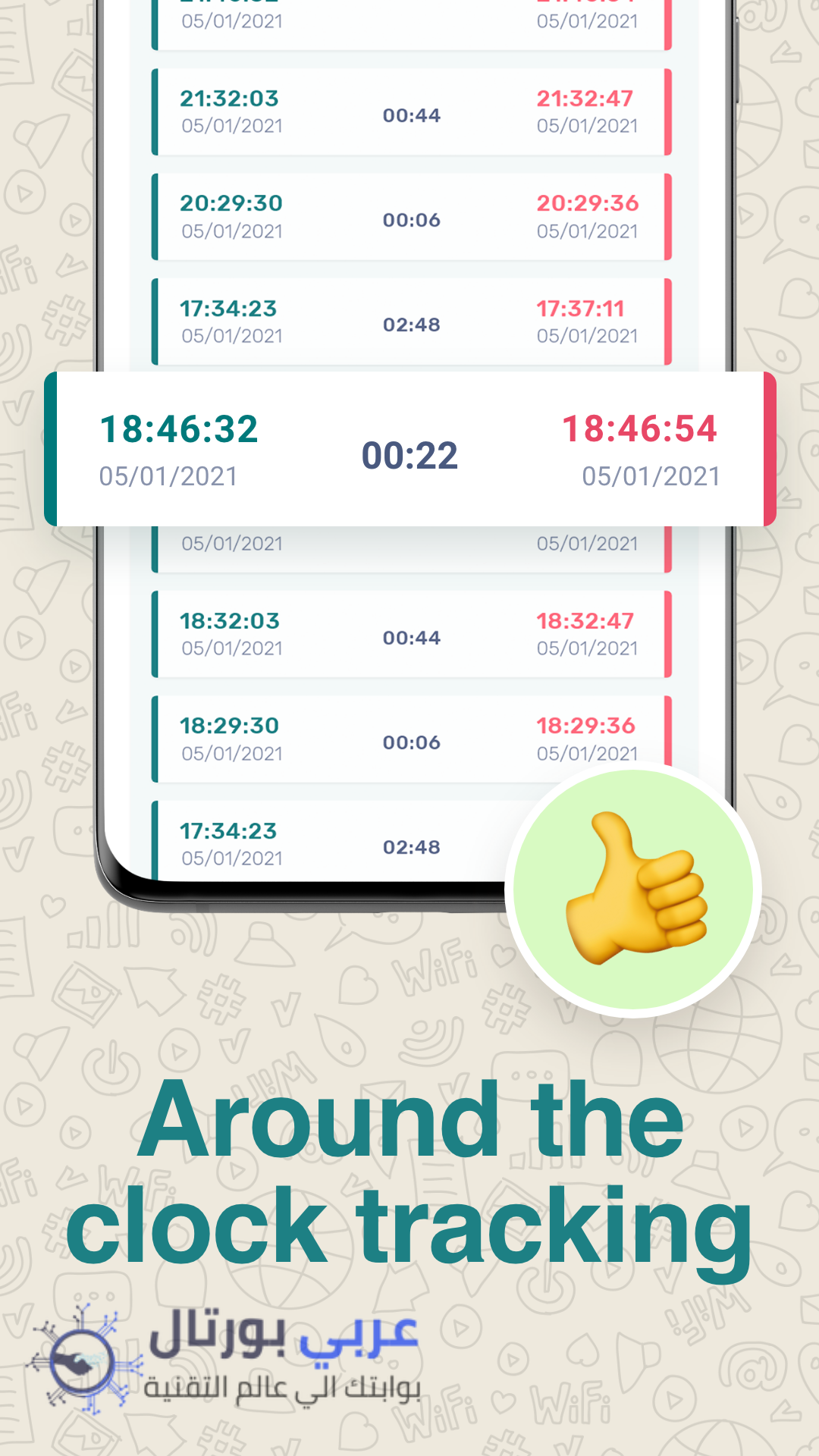 - كما يمكنك الاطلاع على سجل تفصيلي (Log) يوضح ساعات الاتصال والانفصال اليومية أو الأسبوعية.